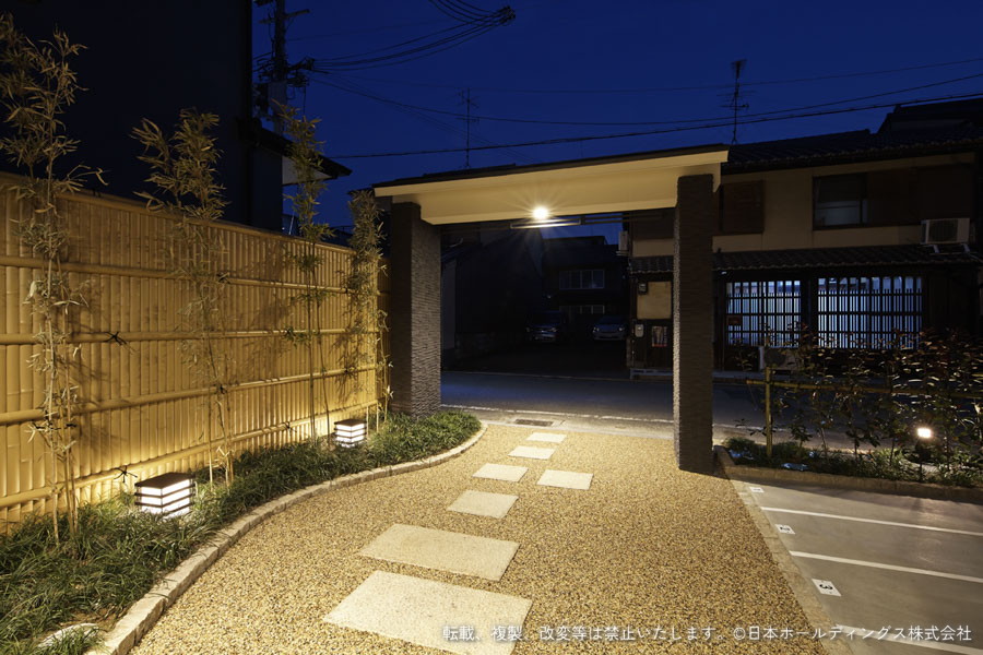 - 茶道文化に倣った「露地」造りのアプローチが、高級感をプラス