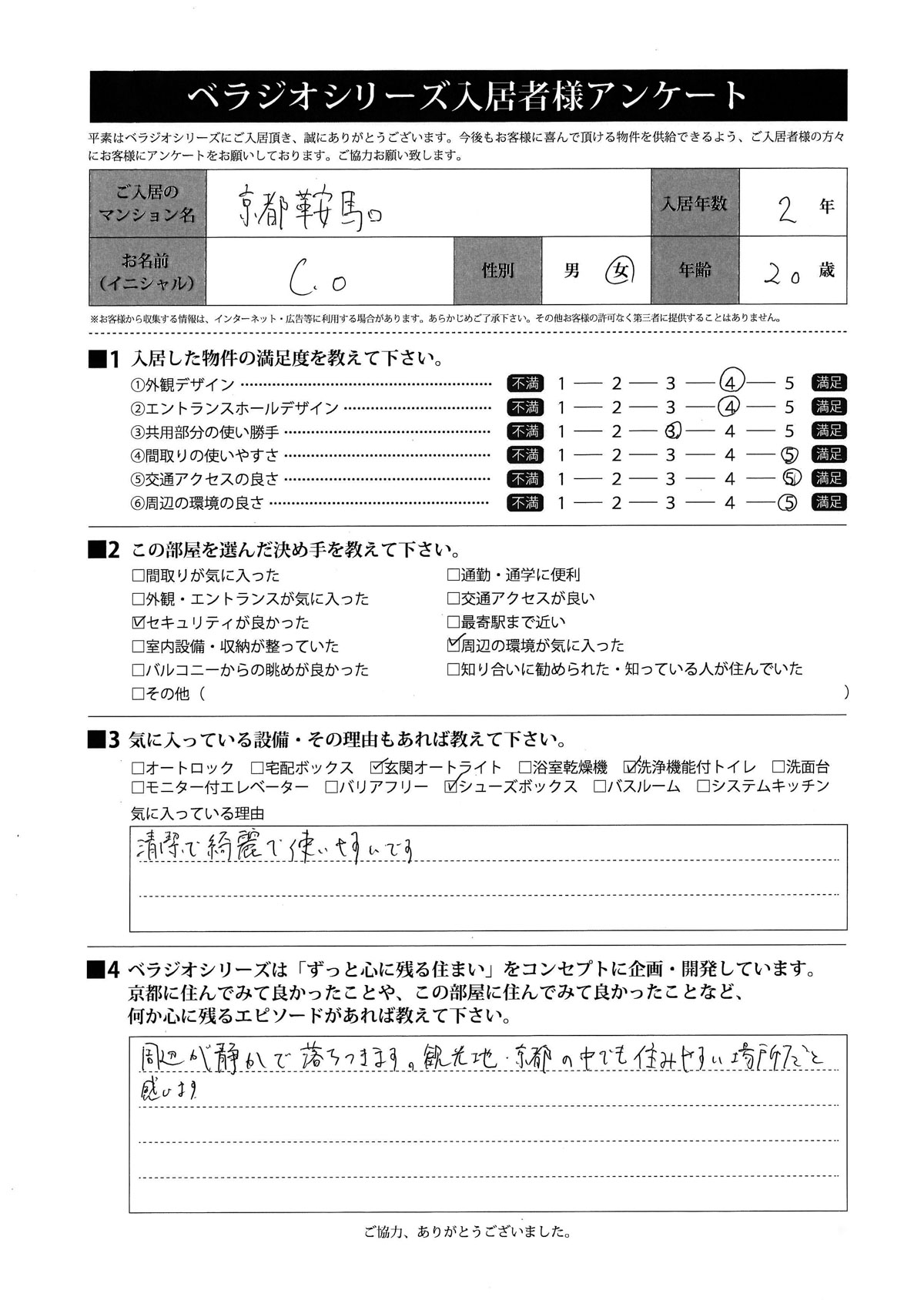 周辺が静かで落ち着きます。観光地・京都の中でも住みやすい場所だと感じます。